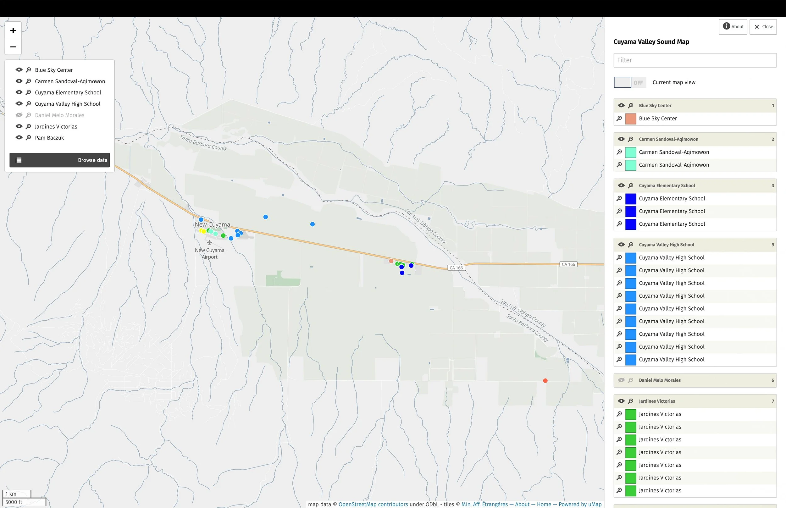 Cuyama Valley Sound Map - Embedded & Interactive, Blue Sky Center, New Cuyama, California, 2023